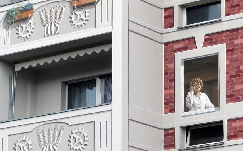 Europe's largest mural on the 'Europa Viertel' painted apartment blocks: Stendaler Straße / corner Quedlinburger Straße 12627 Berlin